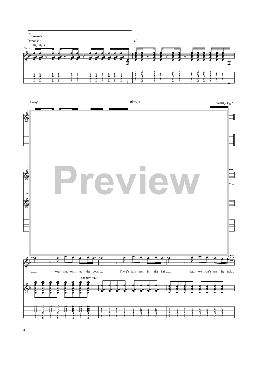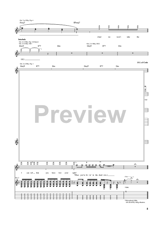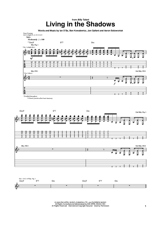 Digital Sheet Music for Living In The Shadows by Billy Talent, Ian D'Sa, Jon Gallant, Ben Kowalewicz, Aaron Solowoniuk scored for Guitar Tab; id:389021