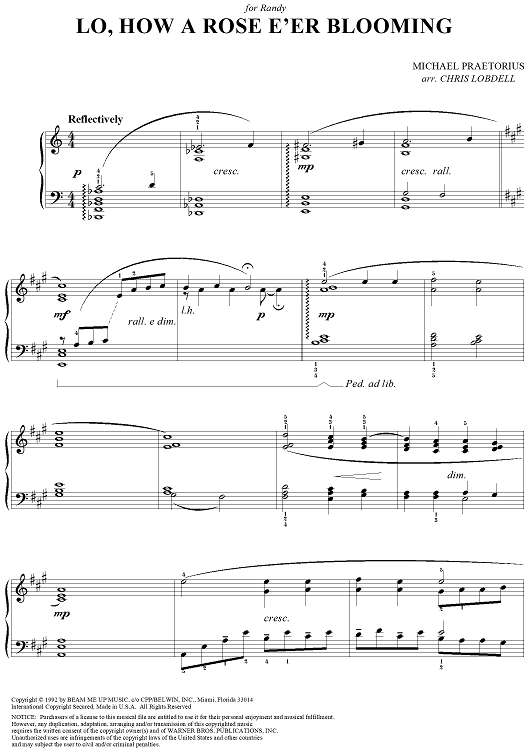Digital Sheet Music for Lo, How a Rose E'er Blooming by Michael Praetorius, Chris Lobdell scored for Piano Solo; id:254851