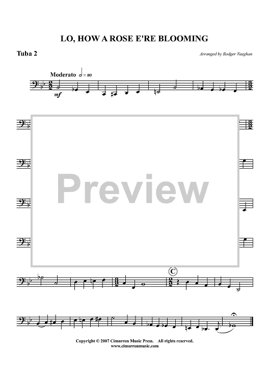 Digital Sheet Music for Lo, How a Rose E're Blooming - Tuba 2 by Rodger Vaughan, Traditional scored for Tuba Quartet; id:413601