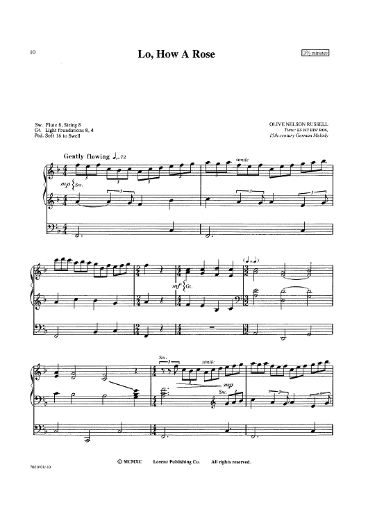 Digital Sheet Music for Lo, How a Rose by Olive Nelson Russell, German Melody scored for Organ Solo; id:434790
