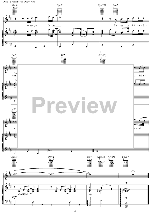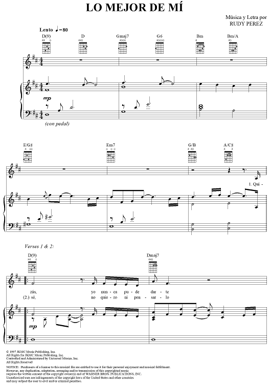 Digital Sheet Music for Lo Mejor de Mí by Rudy Perez, Cristian Castro scored for Piano/Vocal/Chords; id:285175