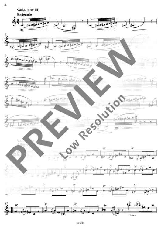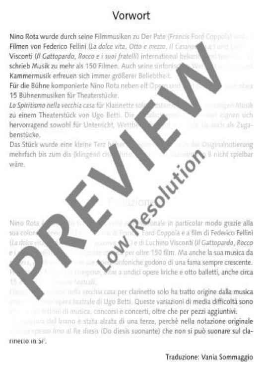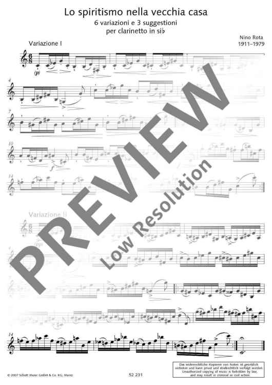 The composer Nino Rota has become famous, in particular, by his film music to 'Godfather' (Francis Ford Coppola) and to films by Federico Fellini (La dolce vita, Otto e mezzo, Il Casanova, etc.) and Luchino Visconti (Il Gattopardo, Rocco e i suoi fratelli). But even his chamber music, concertos and stage works enjoy increasing popularity. This work for solo clarinet comes from the incidental music of the same name of a theatre play by Ugo Betti. These variations of intermediate difficulty are perfectly suited for music lessons, competitions and concerts, as well as encore pieces.