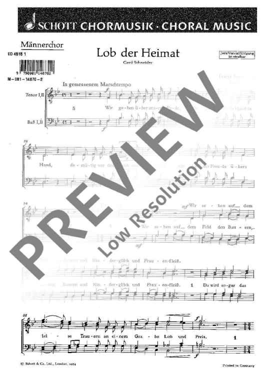 Digital Sheet Music for Lob der Heimat - Choral Score by Franz Frommlet scored for Men's Choir, Children's Choir And Wind Band; id:480054