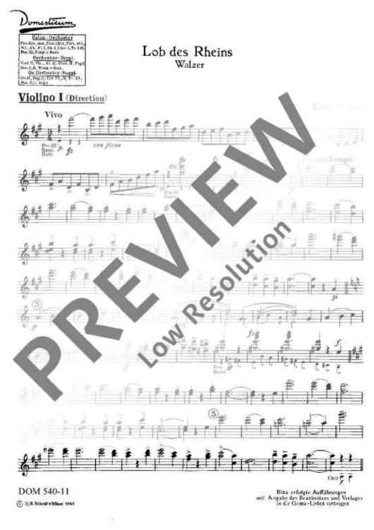 Digital Sheet Music for Lob des Rheins - Violin I [cond.] by Ernst Fischer scored for Salon Orchestra; id:491568