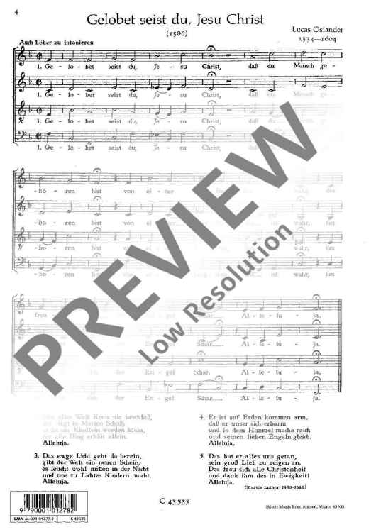 Digital Sheet Music for Lobet den Herren, alle Heiden / Gelobet seist du, Jesu Christ - Choral Score by Gallus Dressler, Lucas Osiander scored for Mixed Choir (satb); id:471724