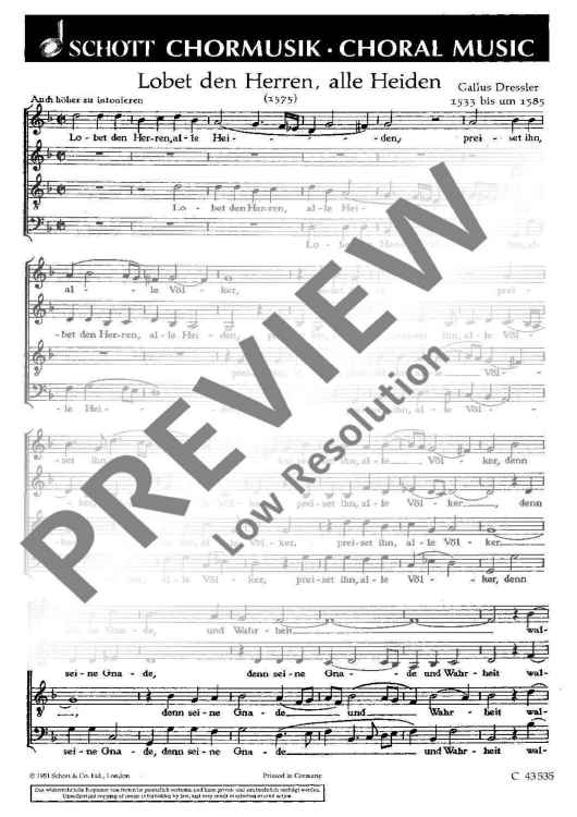 "Lobet den Herren, alle Heiden / Gelobet seist du, Jesu Christ - Choral Score" Sheet Music by Gallus Dressler