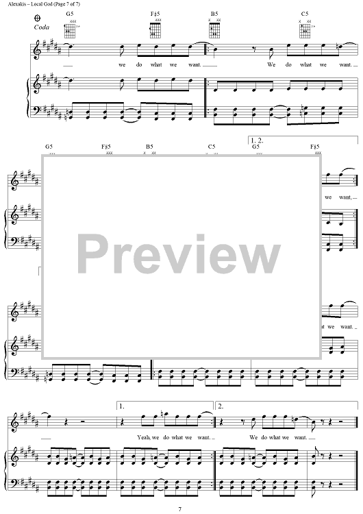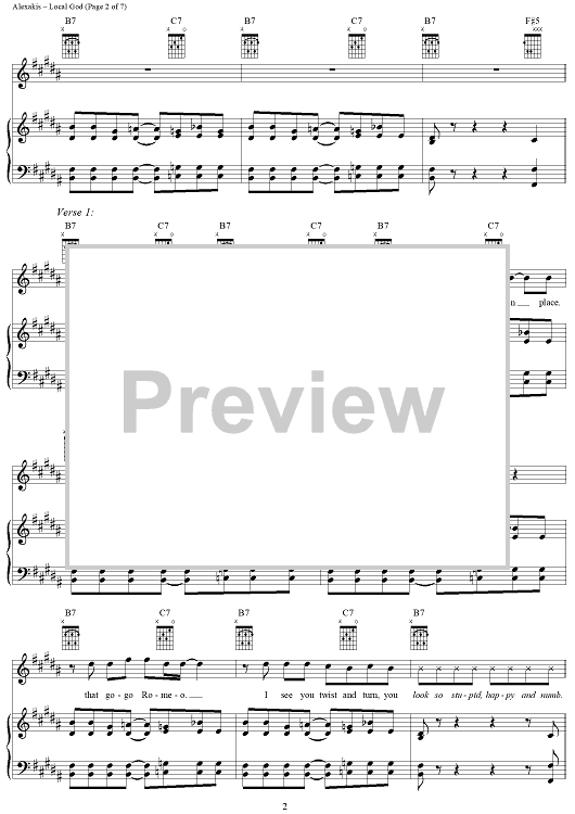 Digital Sheet Music for Local God by Everclear, Art Alexakis, Craig Montoya, Greg Eklund scored for Piano/Vocal/Chords; id:241202