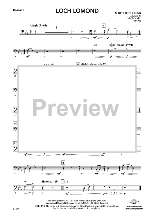 Digital Sheet Music for Loch Lomond - Bassoon by Scottish Folk Song, JaRod Hall scored for Concert Band; id:499664