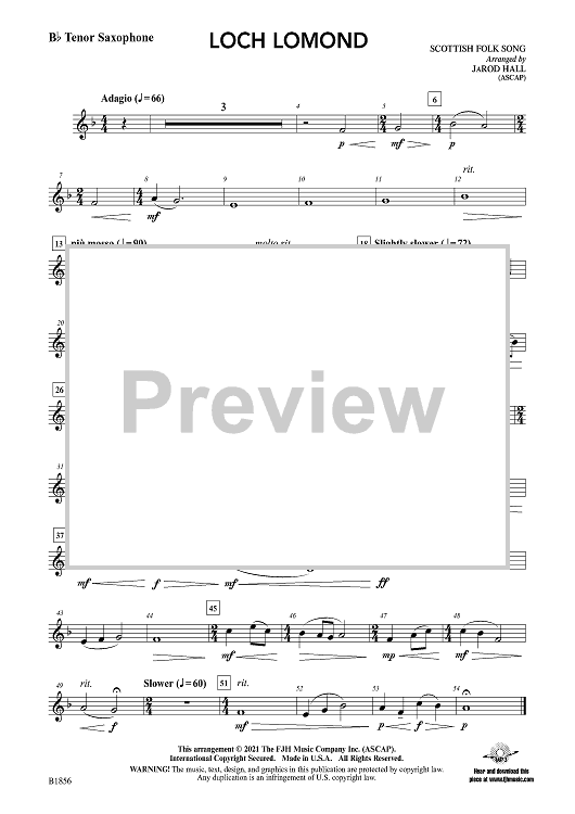 Digital Sheet Music for Loch Lomond - Bb Tenor Sax by Scottish Folk Song, JaRod Hall scored for Concert Band; id:499669