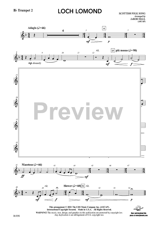Digital Sheet Music for Loch Lomond - Bb Trumpet 2 by Scottish Folk Song, JaRod Hall scored for Concert Band; id:499672