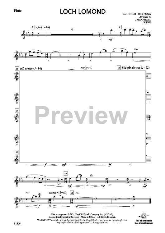 Digital Sheet Music for Loch Lomond - Flute by Scottish Folk Song, JaRod Hall scored for Concert Band; id:499662