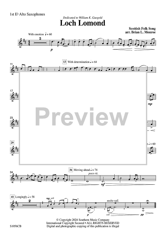 Digital Sheet Music for Loch Lomond for Concert Band - 1st Eb Alto Saxophones by Traditional, Brian Monroe scored for Concert Band; id:506538
