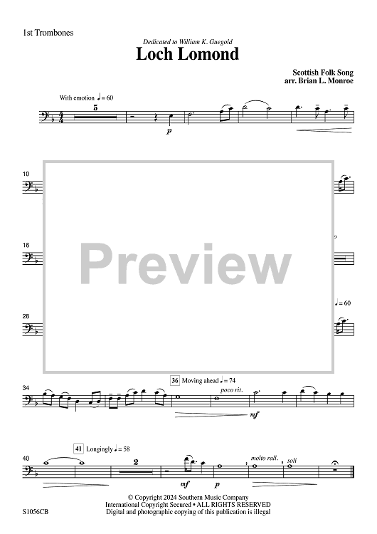 Digital Sheet Music for Loch Lomond for Concert Band - 1st Trombones by Traditional, Brian Monroe scored for Concert Band; id:506547