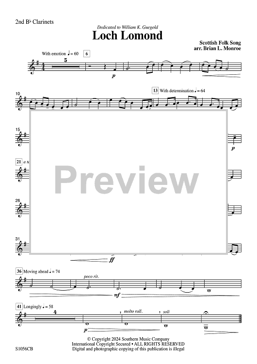 Digital Sheet Music for Loch Lomond for Concert Band - 2nd Bb Clarinets by Traditional, Brian Monroe scored for Concert Band; id:506534