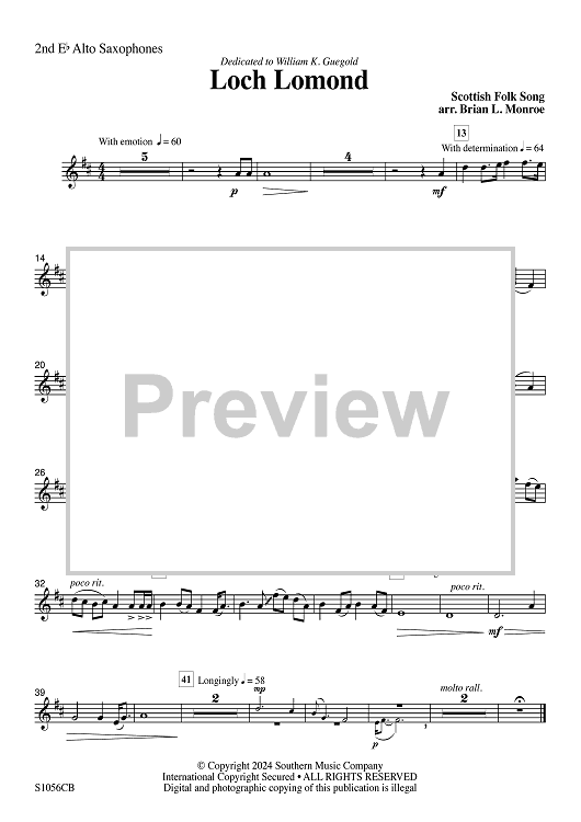Digital Sheet Music for Loch Lomond for Concert Band - 2nd Eb Alto Saxophones by Traditional, Brian Monroe scored for Concert Band; id:506539