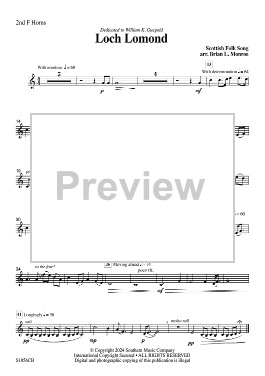 Digital Sheet Music for Loch Lomond for Concert Band - 2nd F Horns by Traditional, Brian Monroe scored for Concert Band; id:506546