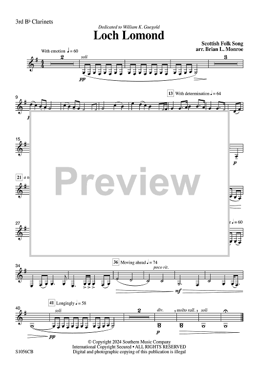 Digital Sheet Music for Loch Lomond for Concert Band - 3rd Bb Clarinets by Traditional, Brian Monroe scored for Concert Band; id:506535