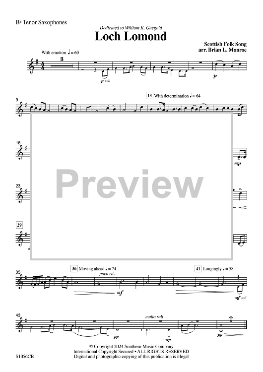Digital Sheet Music for Loch Lomond for Concert Band - Bb Tenor Saxophones by Traditional, Brian Monroe scored for Concert Band; id:506540