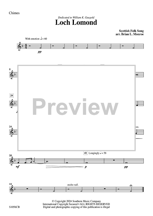 Digital Sheet Music for Loch Lomond for Concert Band - Chimes by Traditional, Brian Monroe scored for Concert Band; id:506554