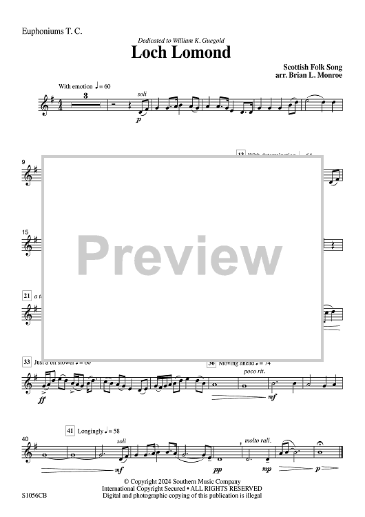 Digital Sheet Music for Loch Lomond for Concert Band - Euphoniums TC by Traditional, Brian Monroe scored for Concert Band; id:506549