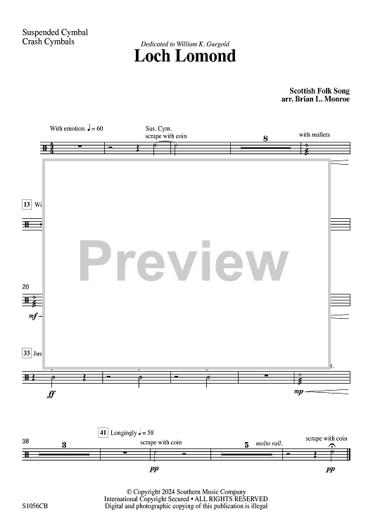 Digital Sheet Music for Loch Lomond for Concert Band - Suspended Cymbal / Crash Cymbals by Traditional, Brian Monroe scored for Concert Band; id:506557