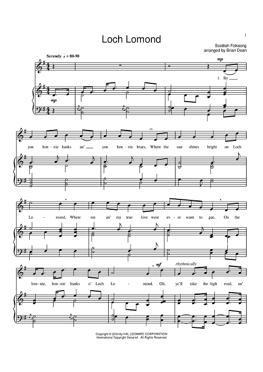 Digital Sheet Music for Loch Lomond by scored for Piano/Vocal/Chords; id:374520