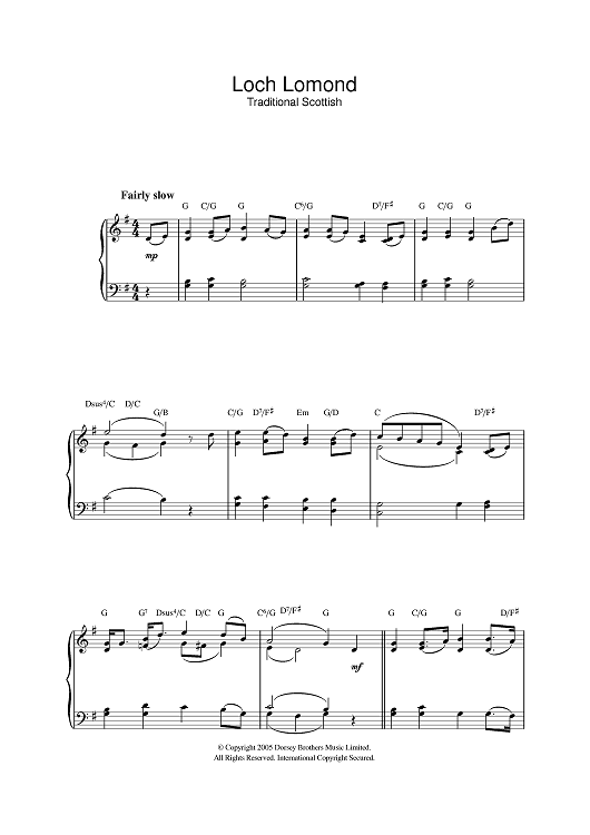 Digital Sheet Music for Loch Lomond by scored for Piano; id:385445