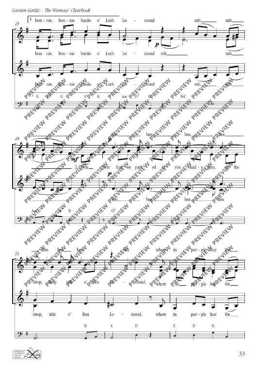 Digital Sheet Music for Loch Lomond by Carsten Gerlitz scored for Female Choir (ssa); id:493264