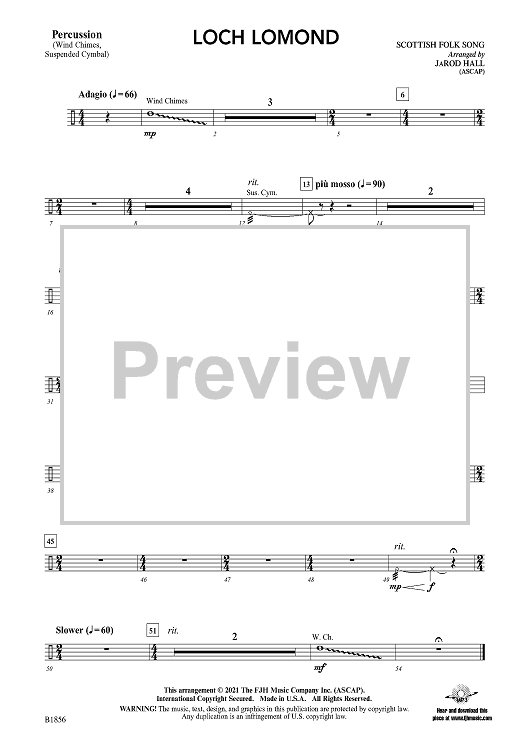 Digital Sheet Music for Loch Lomond - Percussion by Scottish Folk Song, JaRod Hall scored for Concert Band; id:499681