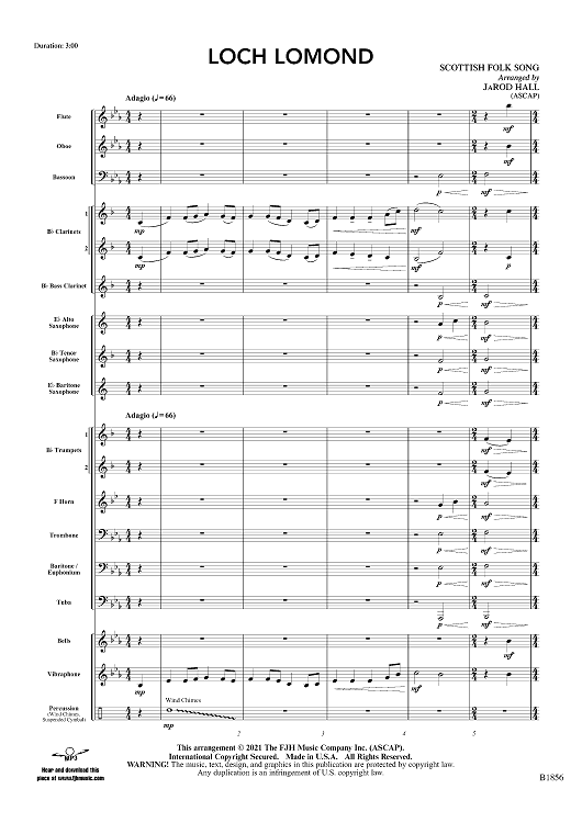 Digital Sheet Music for Loch Lomond - Score by Scottish Folk Song, JaRod Hall scored for Concert Band; id:470897