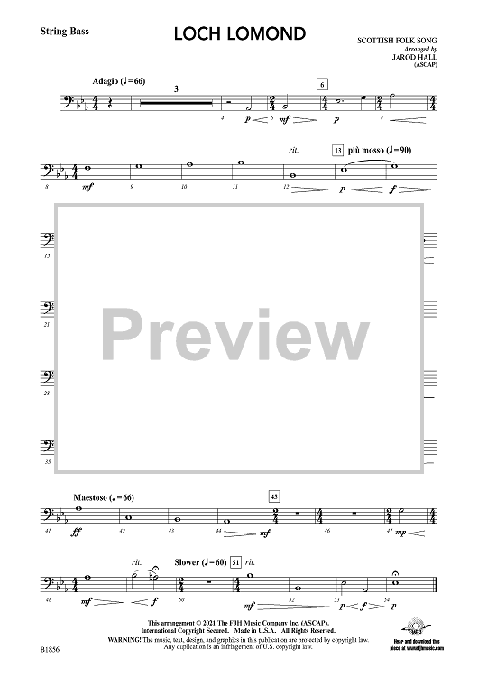 Digital Sheet Music for Loch Lomond - String Bass by Scottish Folk Song, JaRod Hall scored for Concert Band; id:499678
