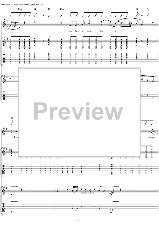 "Locomotive Breath" Sheet Music by Jethro Tull