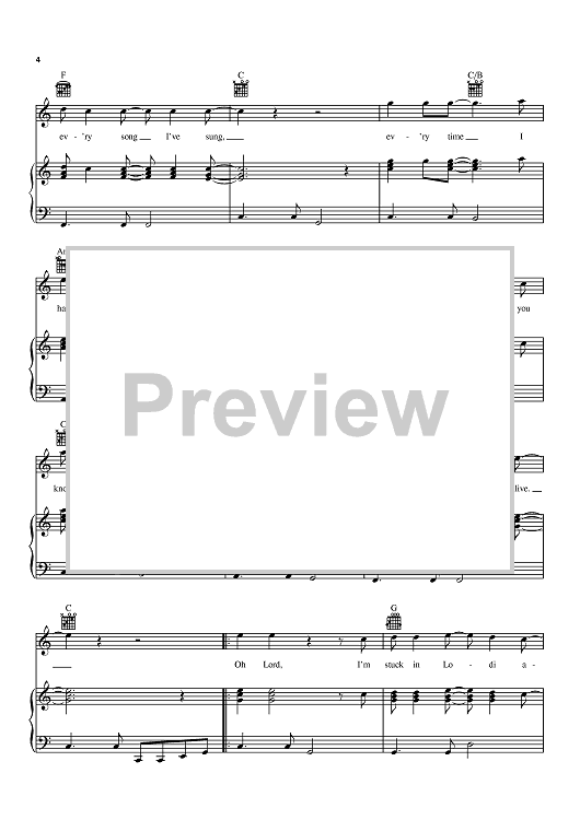 Digital Sheet Music for Lodi by John Fogerty, Creedence Clearwater Revival scored for Piano/Vocal/Chords; id:390387