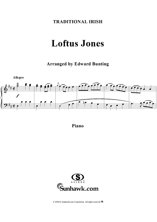 Digital Sheet Music for Loftus Jones by , Edward Bunting, Traditional scored for Piano Solo; id:261341