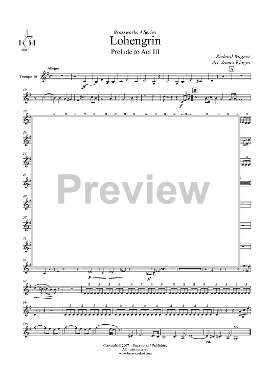Digital Sheet Music for Lohengrin Prelude to Act III - Trumpet 10 by Richard Wagner, James Klages scored for Trumpet Choir; id:361589