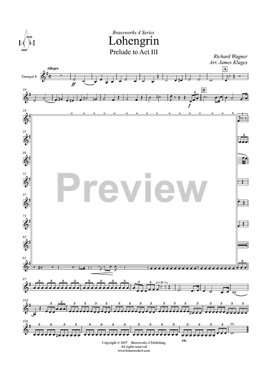 "Lohengrin Prelude to Act III - Trumpet 9" Sheet Music by Richard Wagner
