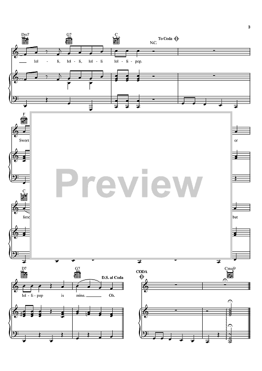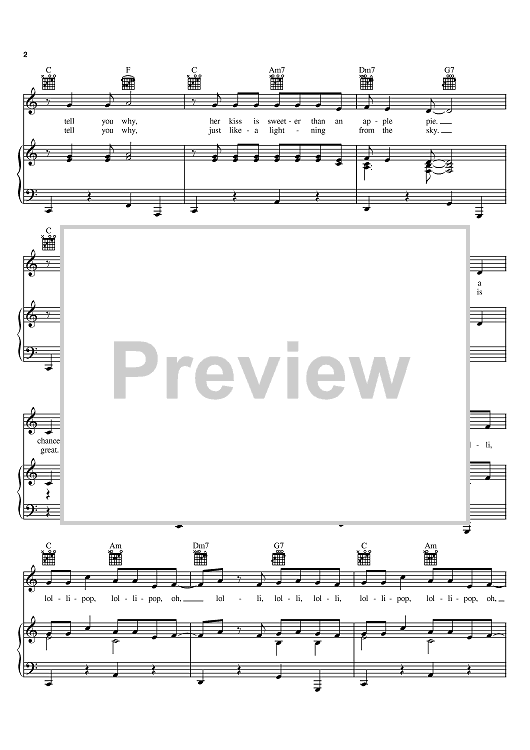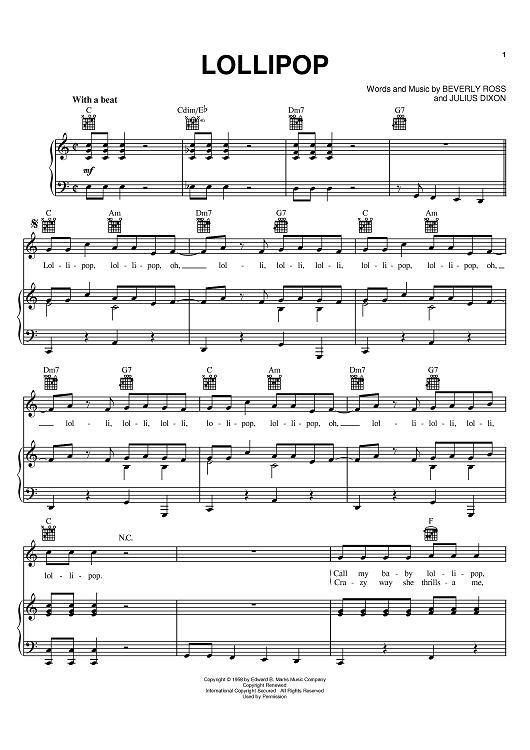 Digital Sheet Music for Lollipop by The Chordettes, Beverly Ross, Julius Dixon scored for Piano/Vocal/Chords; id:381782
