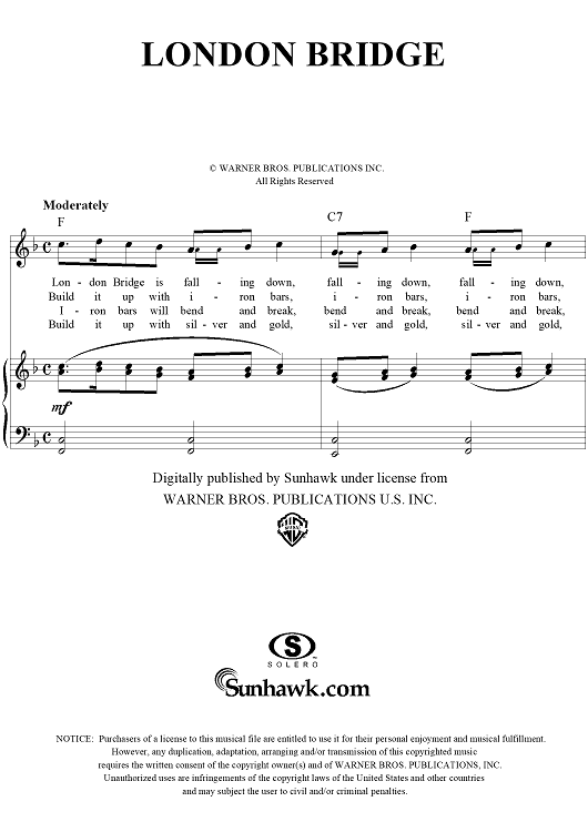 Digital Sheet Music for London Bridge by scored for Piano/Vocal/Chords; id:116208