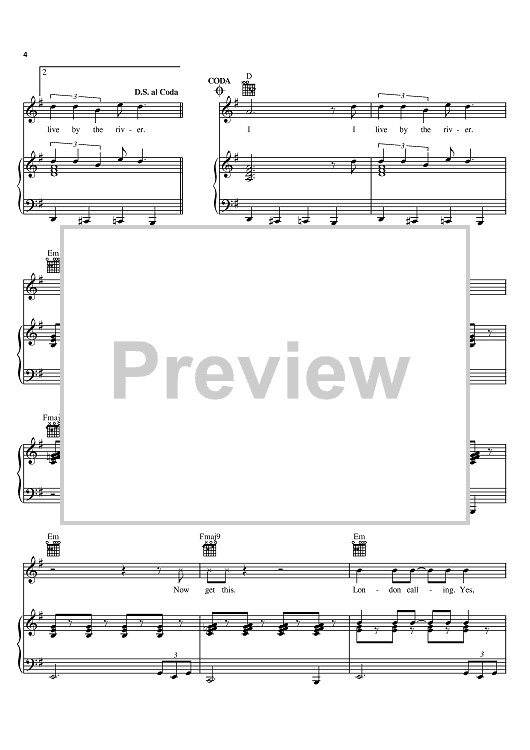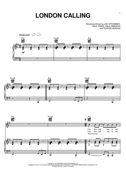Digital Sheet Music for London Calling by The Clash, Mick Jones, Joe Strummer, Paul Simonon scored for Piano/Vocal/Chords; id:374864