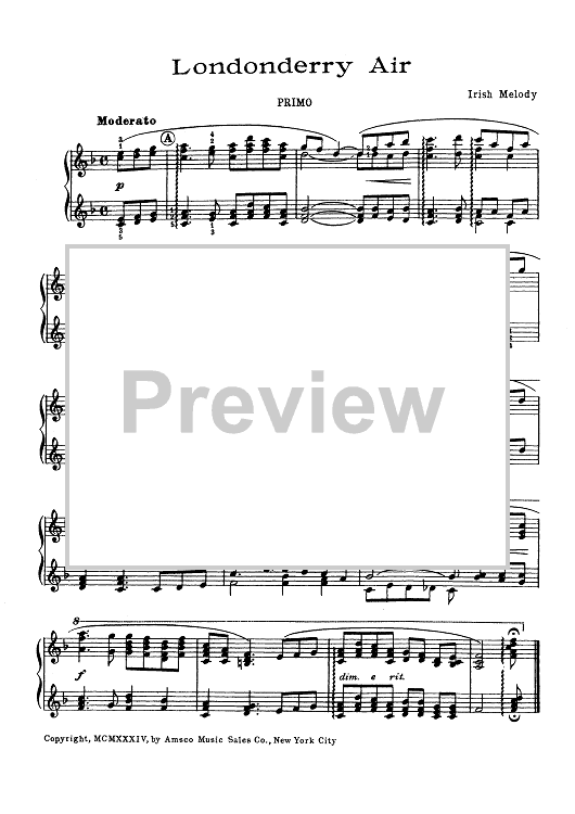 Digital Sheet Music for Londonderry Air by Irish Folk Melody scored for 1 Piano, 4 Hands; id:460865