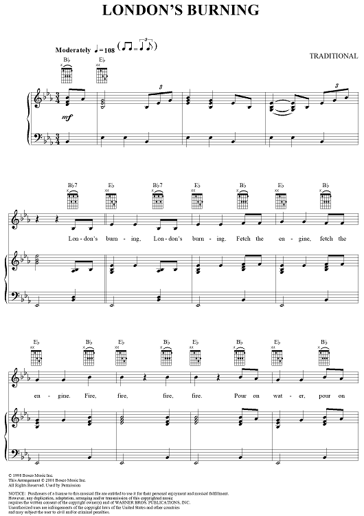 Digital Sheet Music for London's Burning by Traditional scored for Piano/Vocal/Chords; id:289101