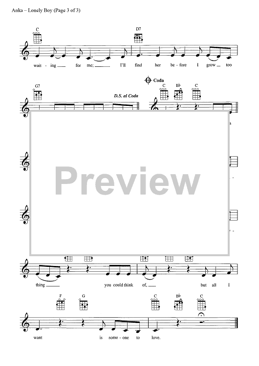 Digital Sheet Music for Lonely Boy by Paul Anka scored for Ukulele/Vocal; id:447207