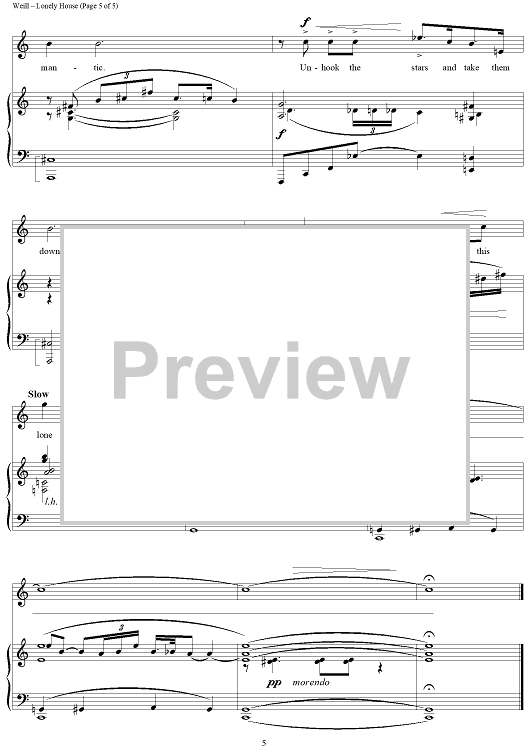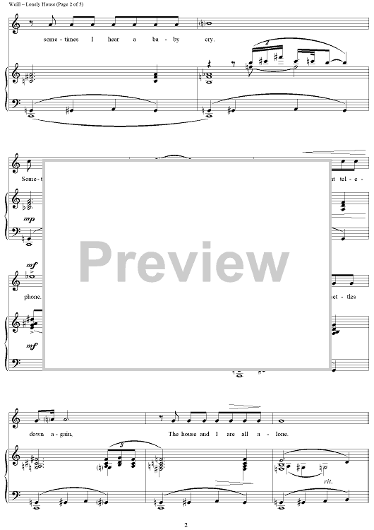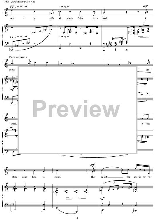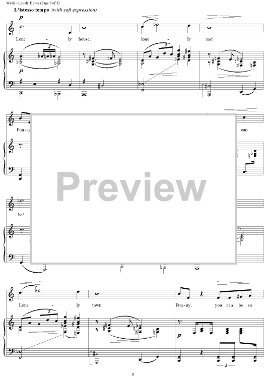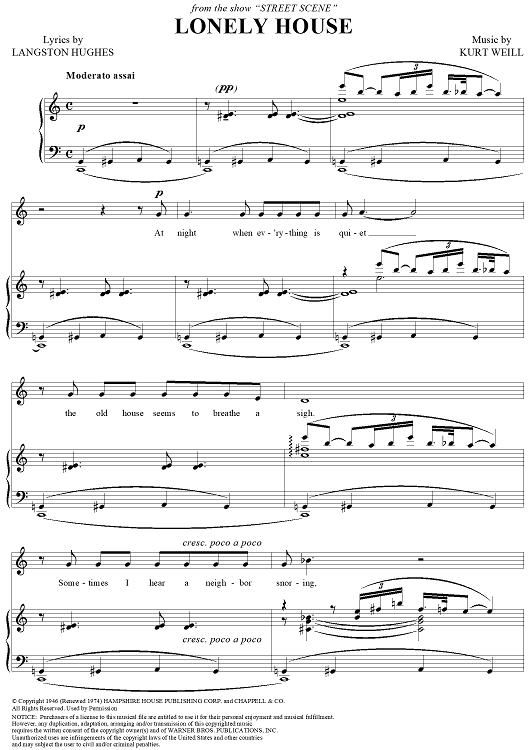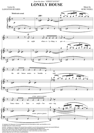 Digital Sheet Music for Lonely House by Langston Hughes, Kurt Weill scored for Piano/Vocal; id:263515