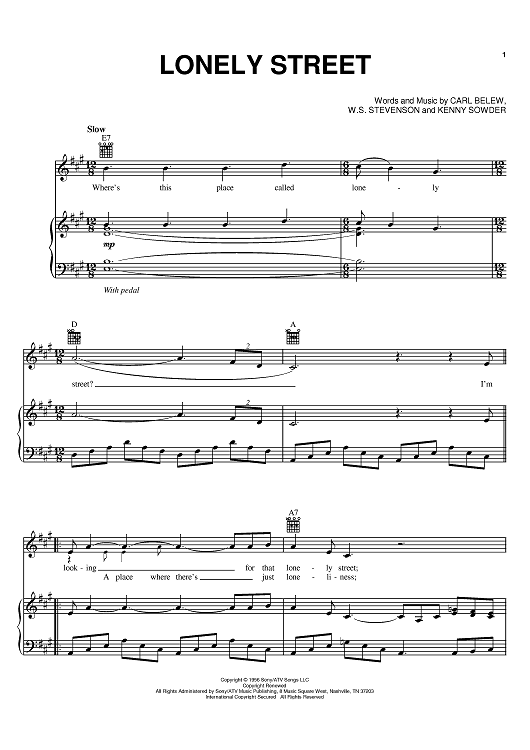 Digital Sheet Music for Lonely Street by Andy Williams, Patsy Cline, George Jones, W. S. Stevenson, Don Gibson, Carl Belew, Carl Perkins, Kenny Sowder scored for Piano/Vocal/Chords; id:386317