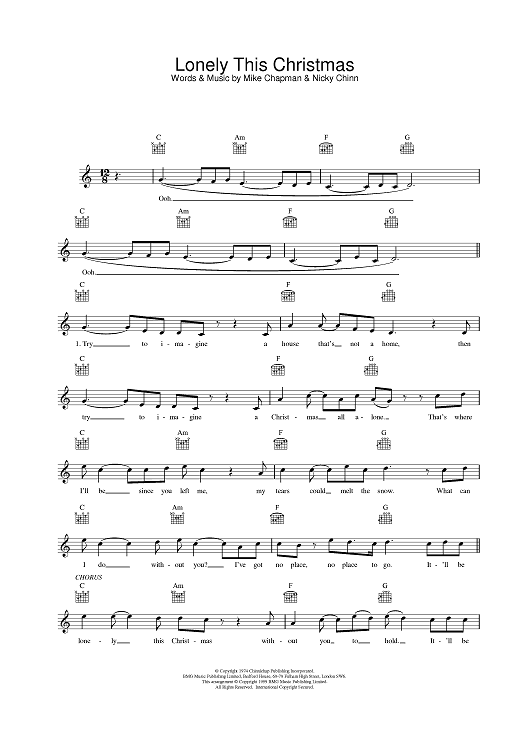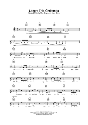 Digital Sheet Music for Lonely This Christmas by Mud scored for Lead Sheet; id:376905