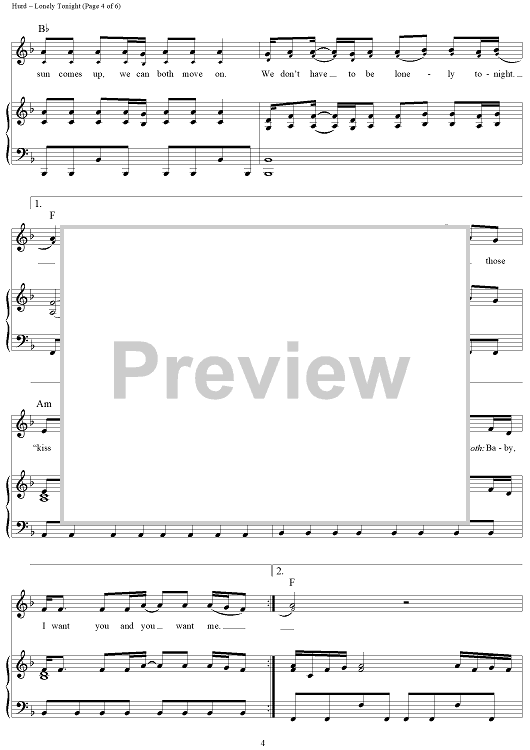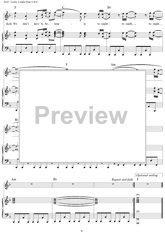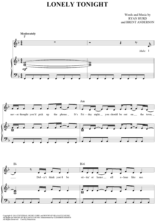 Digital Sheet Music for Lonely Tonight by Blake Shelton, Ashley Monroe, Ryan Hurd, Brent Anderson scored for Piano/Vocal/Chords; id:449111
