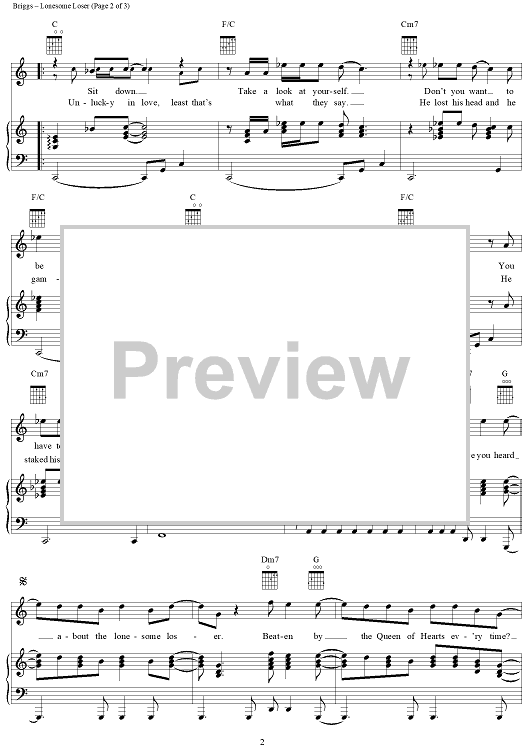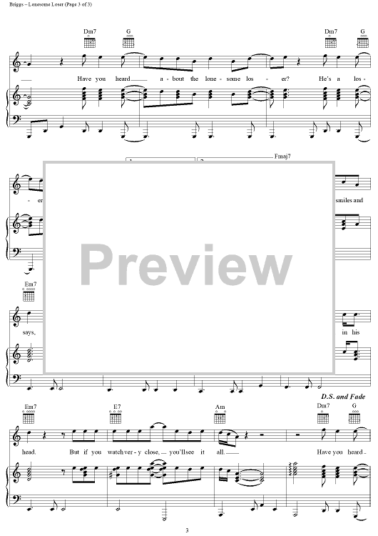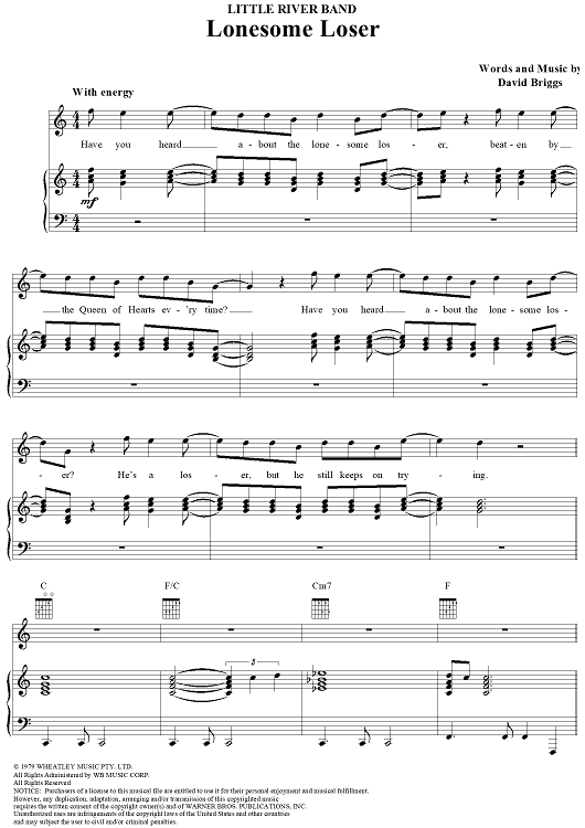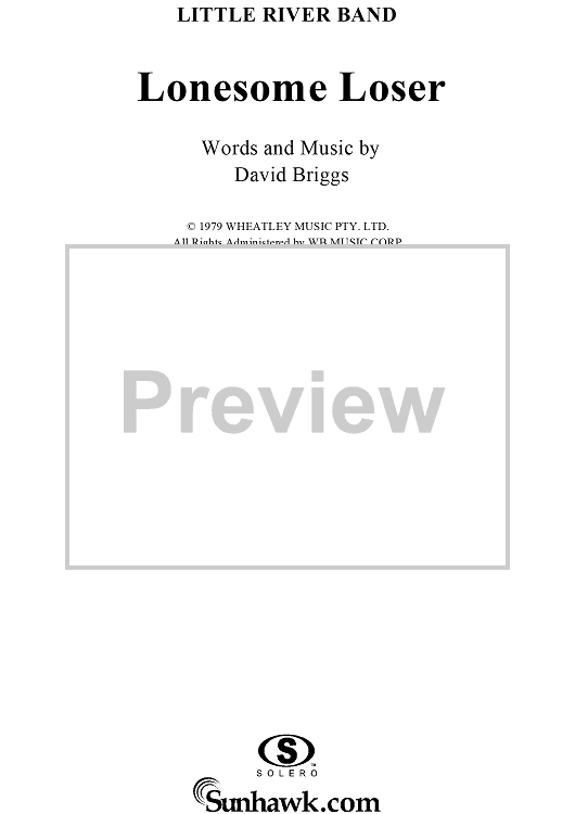 Digital Sheet Music for Lonesome Loser by David Briggs, Little River Band scored for Piano/Vocal/Chords; id:112988
