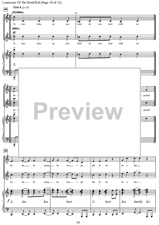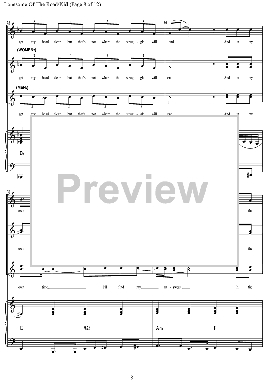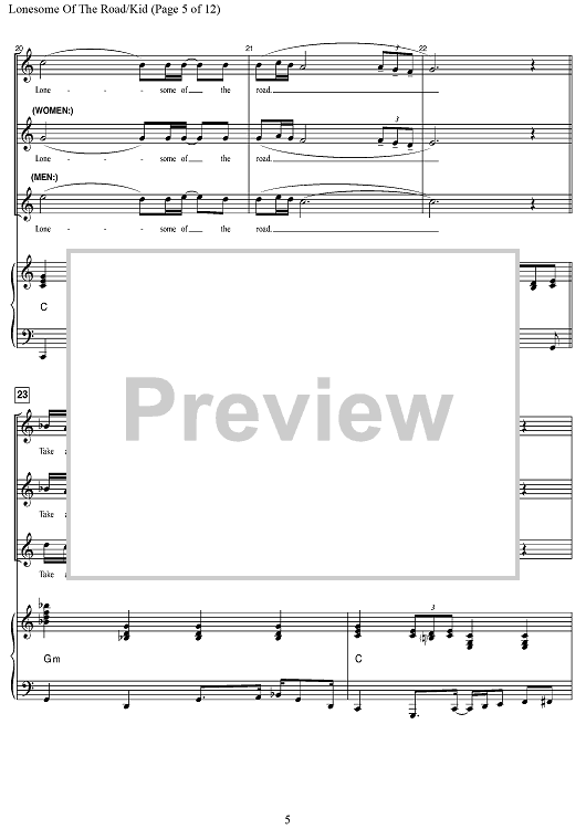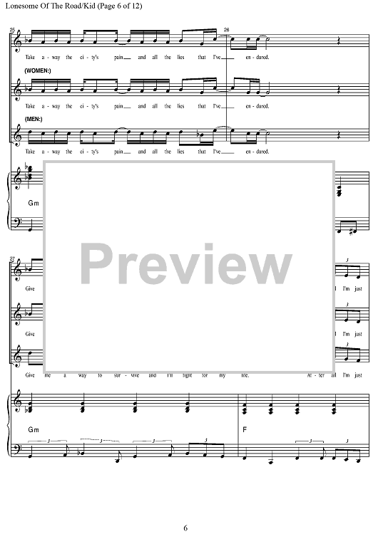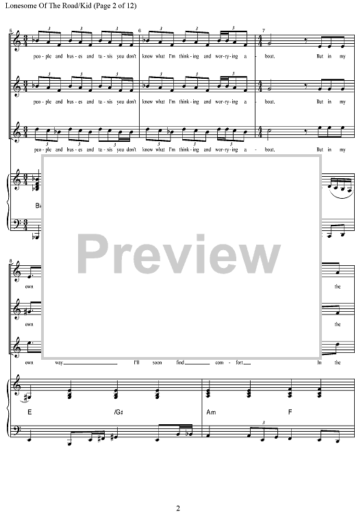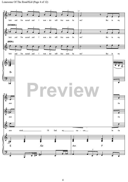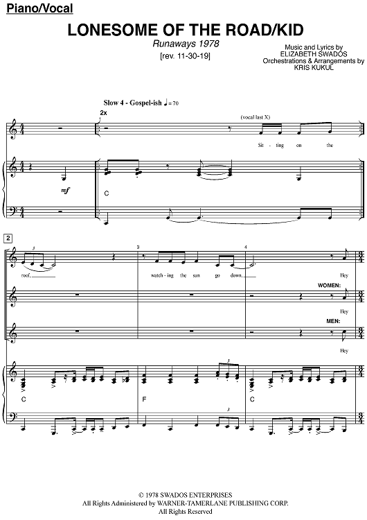 Digital Sheet Music for Lonesome of the Road/Kid by Elizabeth Swados, Kris Kukul scored for Piano/Vocal/Chords; id:469450