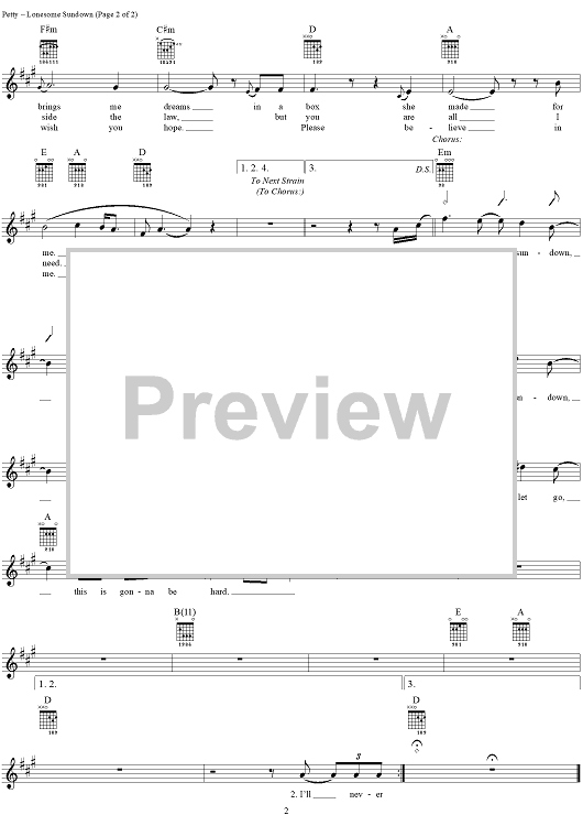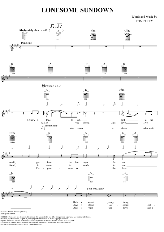 "Lonesome Sundown" Sheet Music by Tom Petty and The Heartbreakers