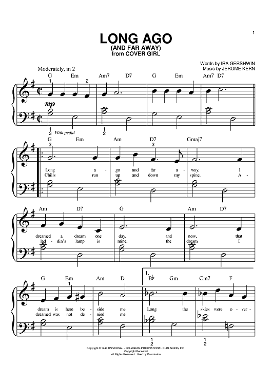 Digital Sheet Music for Long Ago (And Far Away) by Ira Gershwin, Jerome Kern scored for Big Note Piano; id:395325